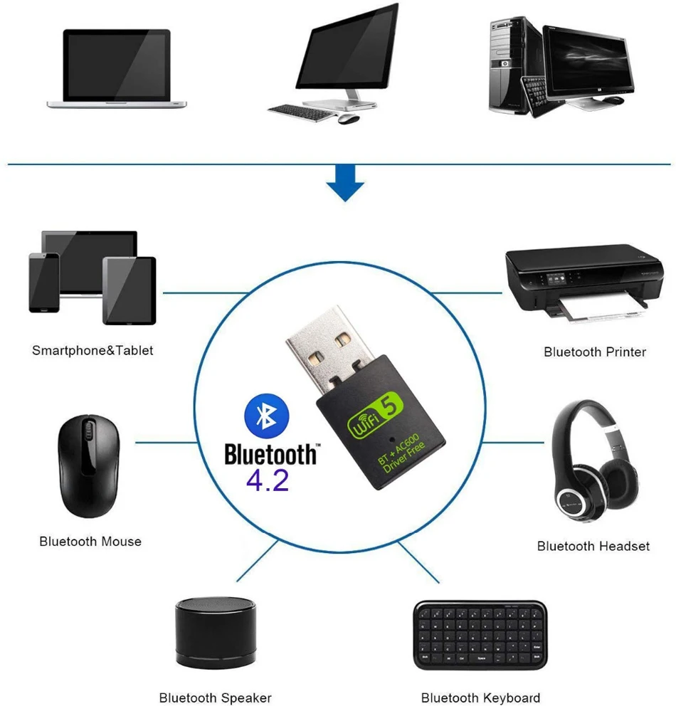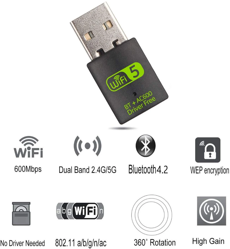 600 Мбит/с WIFI USB адаптер Бесплатный драйвер с Bluetooth 2 в 1 двухдиапазонный 5 ГГц LAN Ethernet адаптер USB Сетевая карта