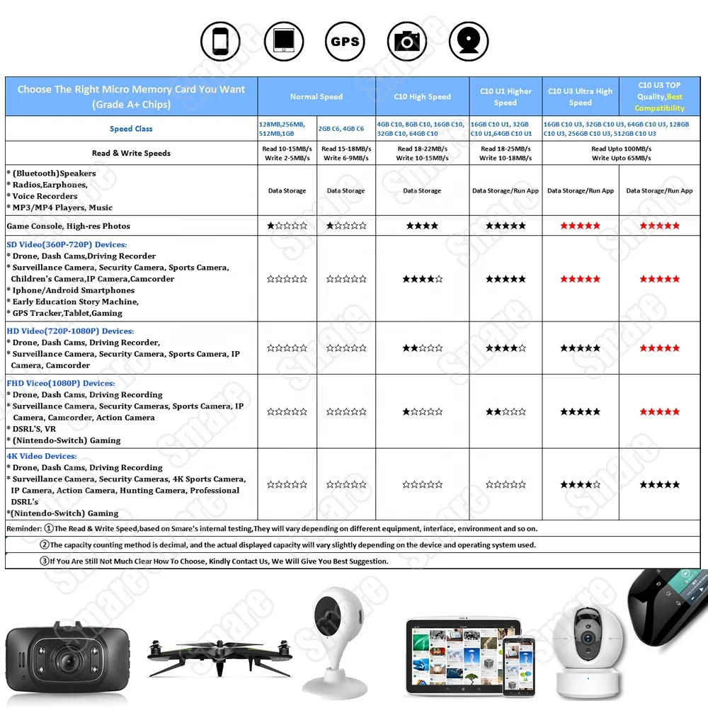 * Пожалуйста, свяжитесь с нами для получения более подробной информации о классе скорости каждой емкости и скорости чтения и записи, вы можете найти тот, который вам нравится здесь :)