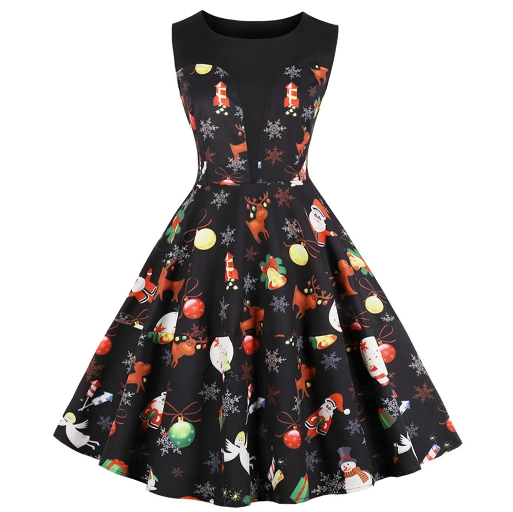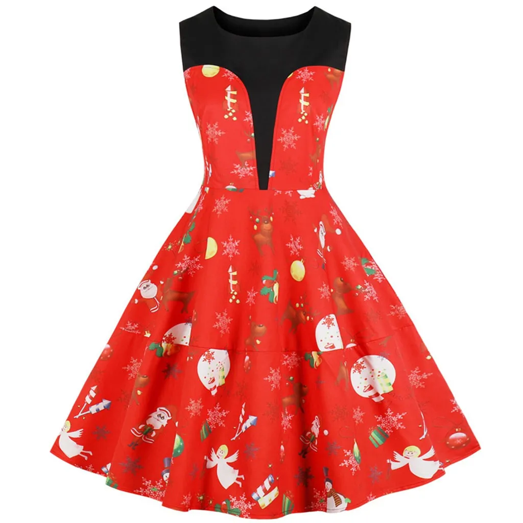 Женское винтажное рождественское платье без рукавов 1950s, вечерние платья для выпускного вечера