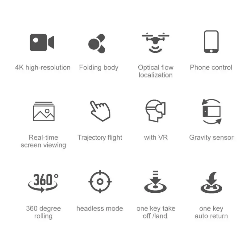 Функция: Видео/фотография/подъем и вниз/вперед и назад/поворот влево и вправо/полет влево и вправо/зависание/вращение на 360 градусов/установка высоты