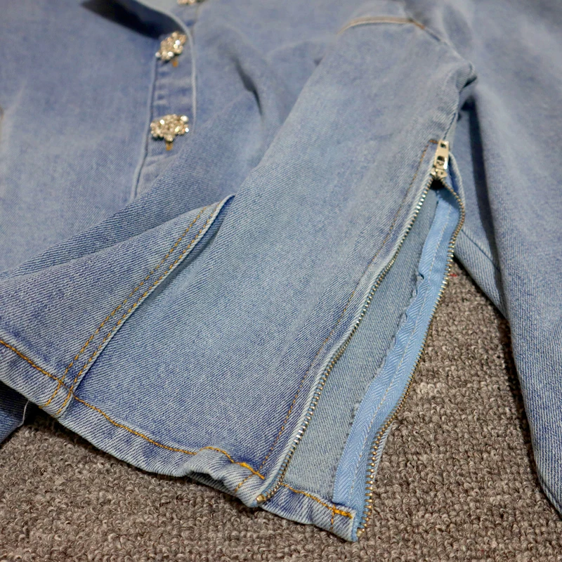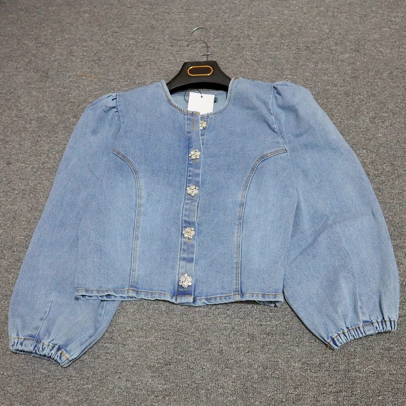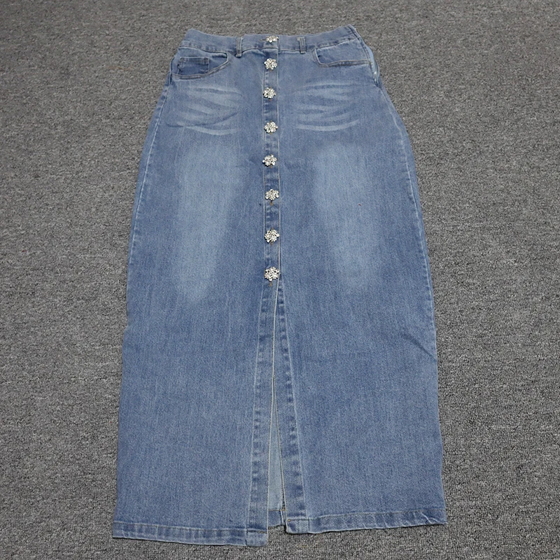 2020; Сезон весна-осень; Женская обувь из джинсовой ткани в винтажном стиле, комплект из двух предметов Chic Алмаз Кнопка Длинные рукава Короткие топы-рубашки + длинные юбки костюмы для женщин