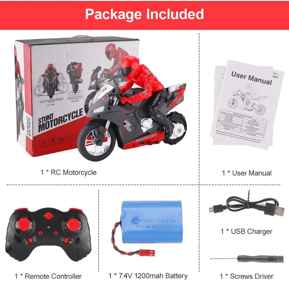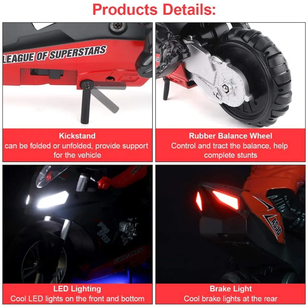 EBOYU HC801 RC мотоцикл 2,4 ГГц 6-осной гироскоп самобалансирующийся дрейф высокоскоростной RC трюковый мотор мотоцикл RTR для детей подарок