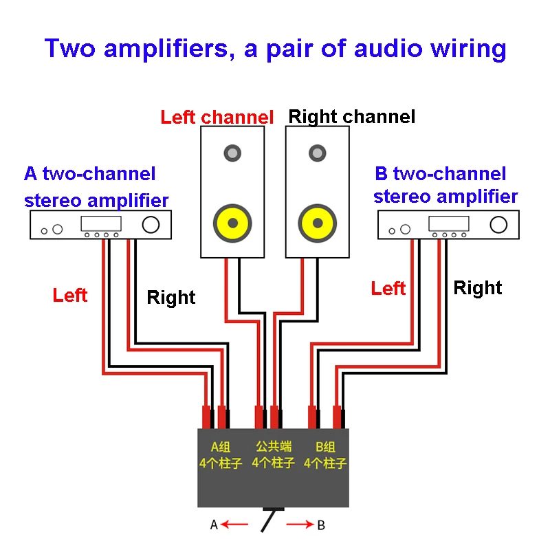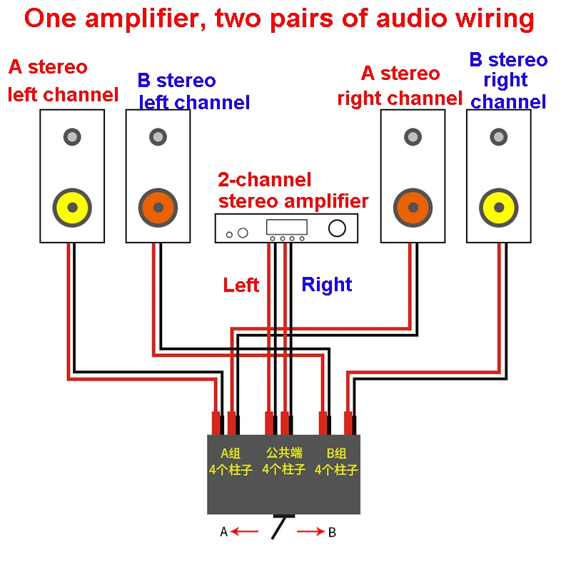 Двухканальный усилитель, переключатель динамиков, два входа и один выход (или один в и два выхода)
