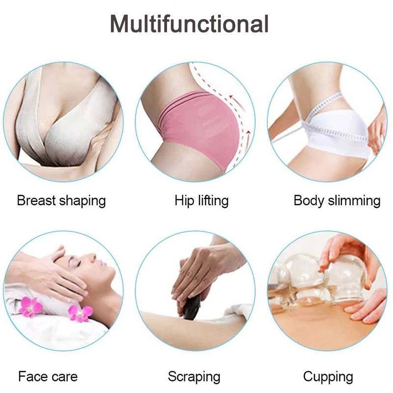 1. Высококачественные материалы являются экологически чистыми, безопасными, нетоксичными и безвредными для кожи. 2. Чашка предназначена для легкого захвата и отжима, чтобы создать аспирацию для лечения. 3. Прозрачный стаканчик также позволяет видеть зону обработки и покраснения кожи. 4. Специально разработанный вакуумный насос может быстро улучшить размер и форму груди без какой-либо боли и угроз для здоровья. 5. Вакуумный насос впитывает частицы жира и жидкости в грудь и клетки, делая грудь более развитой. 6. Стимулирует гипофиз для выработки гормонов, укрепляет эластичность тканей кожи и клетчатку, восстанавливает эластичность и мягкость груди 7. Улучшает форму груди, улучшает впитывание сосков. 8. Для лифтинга, подтяжки кожи, косметического моделирования и вакуумного массажа spa, токсинов, очищения лимфатической системы, очищения пор кожи, ремоделирования кожи, улучшения микроциркуляции. 9. Ускоряет преобразование жирных кислот, безопасно и эффективно удаляет лишний жир, худеет, стройнит, устраняет жир в животе, улучшает форму ног и упругость кожи. 10. Способствует циркуляции крови и способствует детоксикации пищеварительной системы.