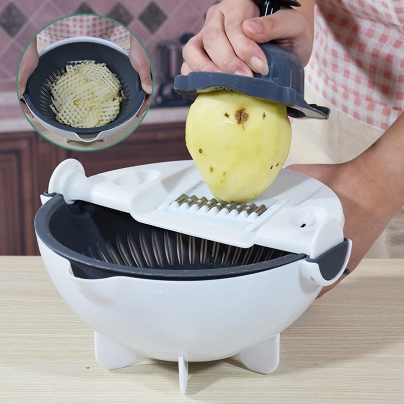 Волшебная многофункциональная вращающаяся овощерезка со сливной корзиной, кухонный овощерезка, измельчитель фруктов, терка, слайсер, Прямая доставка