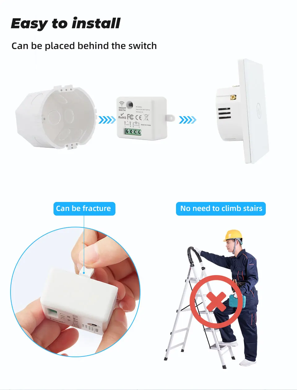 1. Рабочая частота 433 МГц 2. Мини-корпус может быть непосредственно установлен в нижней коробке переключателя 3,20-100 м открытое расстояние 4. Максимальный ток 10A 5. Сенсорный закаленный беспроводной переключатель 6. Анти-капля, Анти-Царапины, влажные руки 7. Дизайн батарейного отсека, легко заменить 8. Флуоресцентный дизайн в ночное время 9.CE, ROHS Сертификация 10. После того, как продукт используется нормально, мощность неожиданно отключается дома, и он отключен по умолчанию, когда звонок входит.