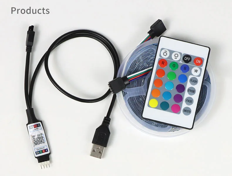 Вариант 1: 1 шт. светодиодная RGB лента APP с Bluetooth + 1 шт. пульт дистанционного управления с 24 кнопками (батарея в комплект не входит CR2025)