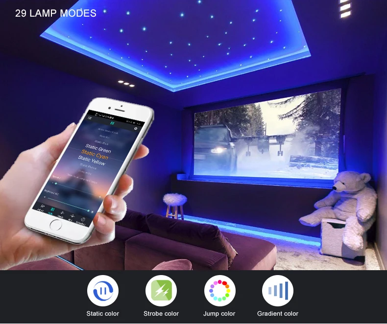 【APP Управление 】 Управление верескового цвета, светодиодный светодиодные полосы света через приложение, дистанционный пульт Управление и Управление;. С помощью приложения вы можете свободно управлять цветами. Bluetooth полосы светильник имеет умный режим воспроизведения музыки, которая создает Романтика, релаксация, вечерние атмосферу с музыкой, светильник s цвет будет изменяться при попадании музыкальными ударов.