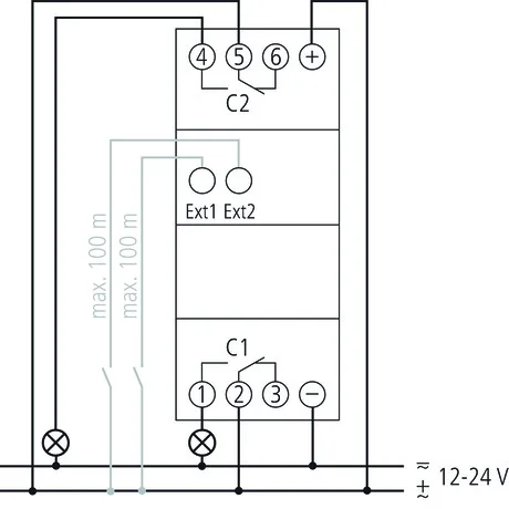 Кнопка подключения (Предустановленная внешняя коммутация, таймер истекает, функция лестничных огней)