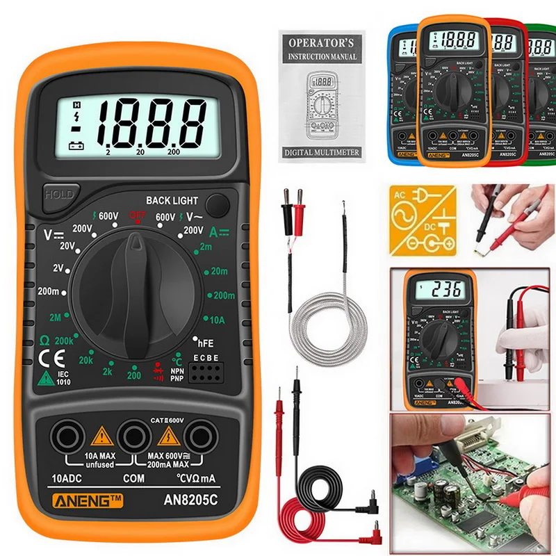 Цифровой мультиметр тестер напряжения измеряет сопротивление тока тесты диоды температура с подсветкой Функция удержания данных
