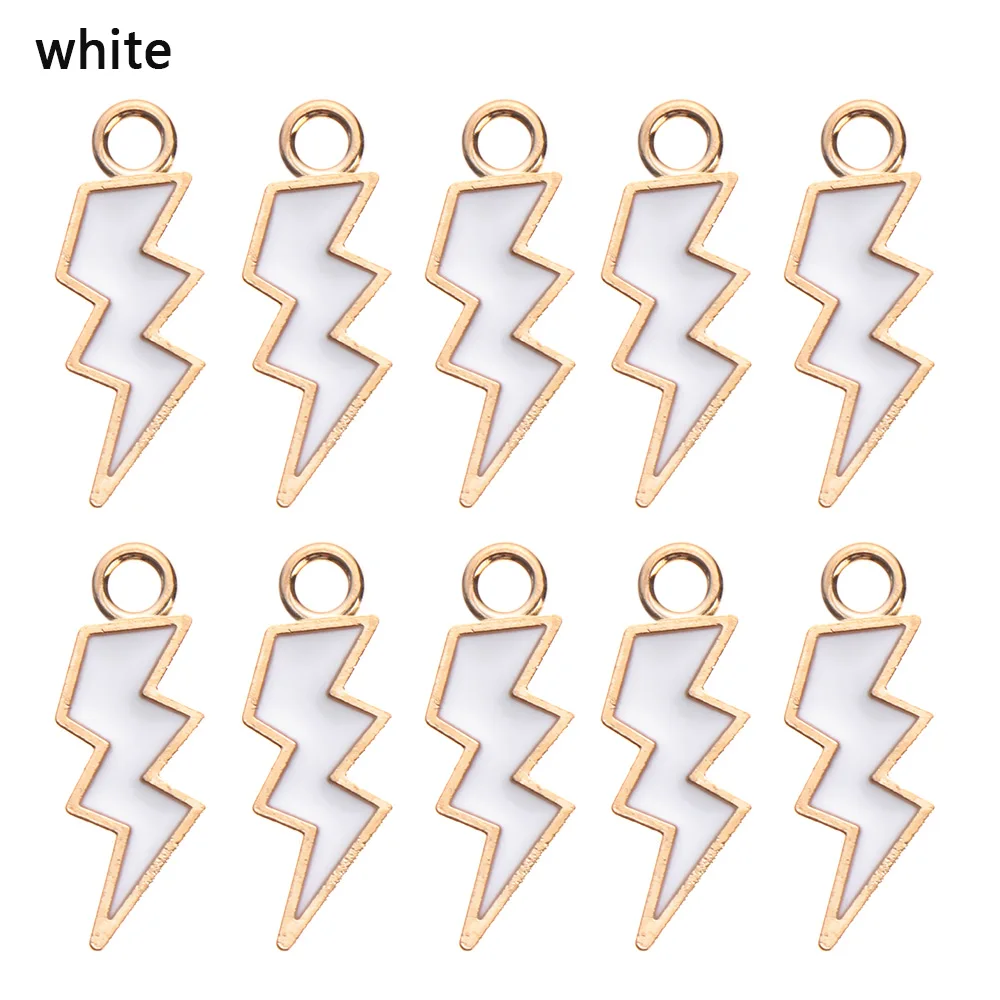 Эмалевые Подвески конфетного цвета из сплава в форме молнии 100% Новинка и высокое качество Материал: сплав, эмаль Цвет: желтый, розовый, фиолетовый, белый, синий, черный, красный, зеленый, темно-синий, розово-красный, Размер: 8*21 мм Спецификация: 10 шт./упак. Тема: молния Стиль: Модный Применяется к: колье, браслету, серьге, брелоку, шпильке и так далее Посылка включает: шармы 10 шт в форме молнии