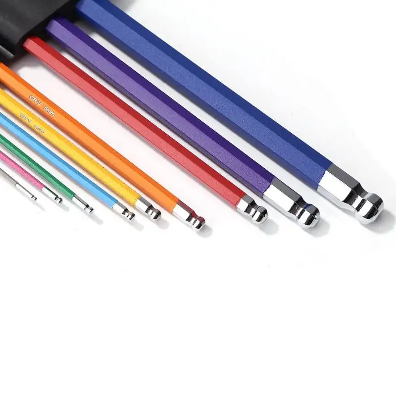 Высококачественный набор ключей L с цветным кодированием, удобная пластиковая крышка. Это гарантирует быструю работоспособность инструмента даже при низких температурах, эргономичный дизайн и удобство в эксплуатации. Износостойкий материал зажима может обеспечить безопасное хранение и легкую разборку l-образного ключа. Шестигранная стандартная поперечная секция обеспечивает большую площадь контакта на головке винта. Таким образом, Режущий Эффект минимизирован и повреждение головки винта более или менее устранено. Даже если трудно установить, шариковая ручка на длинной руке может работать надежно. Черная лазерная обработка поверхности обеспечивает отличную защиту поверхности, даже коррозионную стойкость и длительный срок службы. Лазерная гравировка, поэтому износостойкая маркировка размера на клавише L может быть быстро доступна