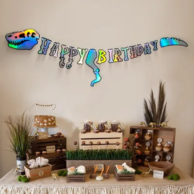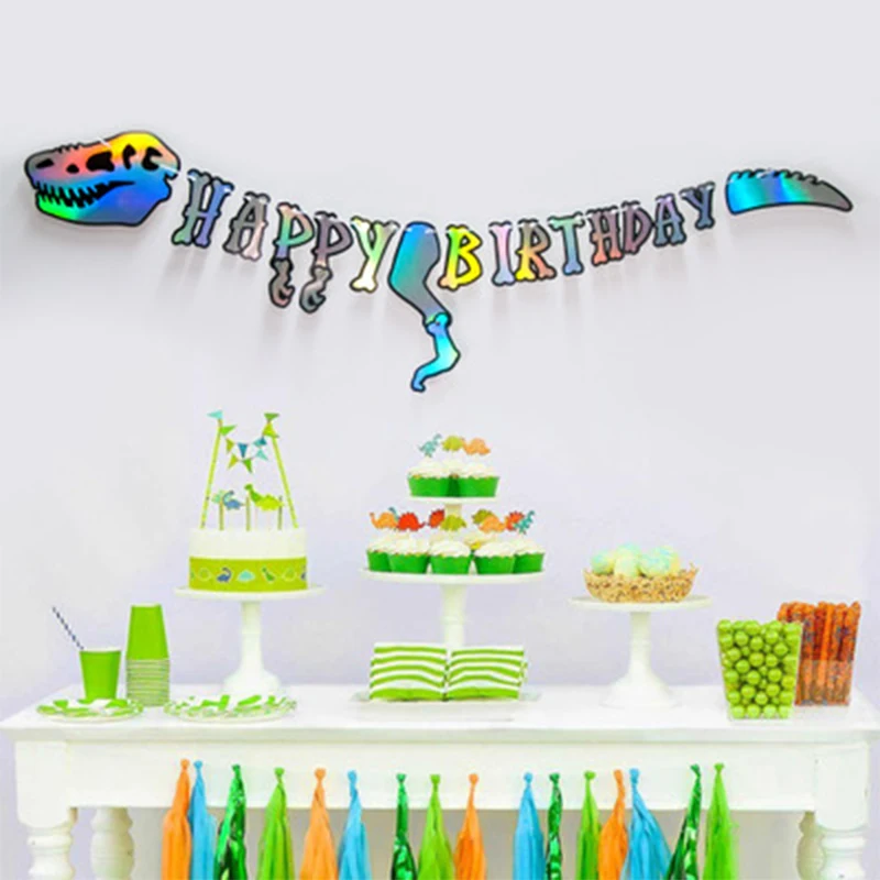 Блестящий цветной динозавр тематический баннер динозавр вечерние Парк Юрского периода день рождения с днем рождения баннер достаринный динозавр скелет