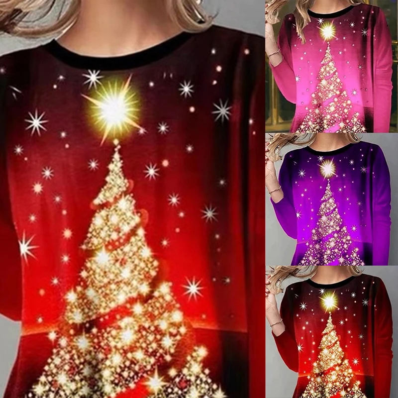 Женская рождественская блузка с принтом рождественской елки, Повседневная Блузка с длинным рукавом, женская рубашка, Camiseta Mujer