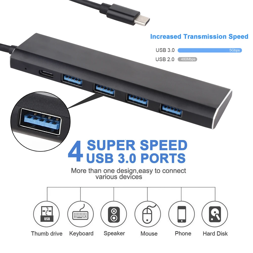 -Позволяет подключать клавиатуру, мышь, большой палец к ноутбуку; Обеспечивает высокую скорость передачи данных до 5 Гбит/с. (Для стабильного подключения подключенные устройства не должны превышать комбинированный ток 900мА.)