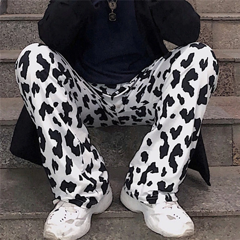 Женские брюки с принтом коровы в Корейском стиле; Широкие брюки с принтом коровы; Брюки Harajuku; Летняя Корейская одежда; Уличная одежда для женщин