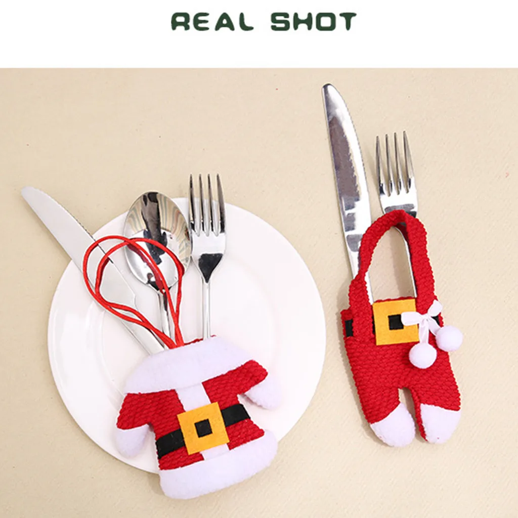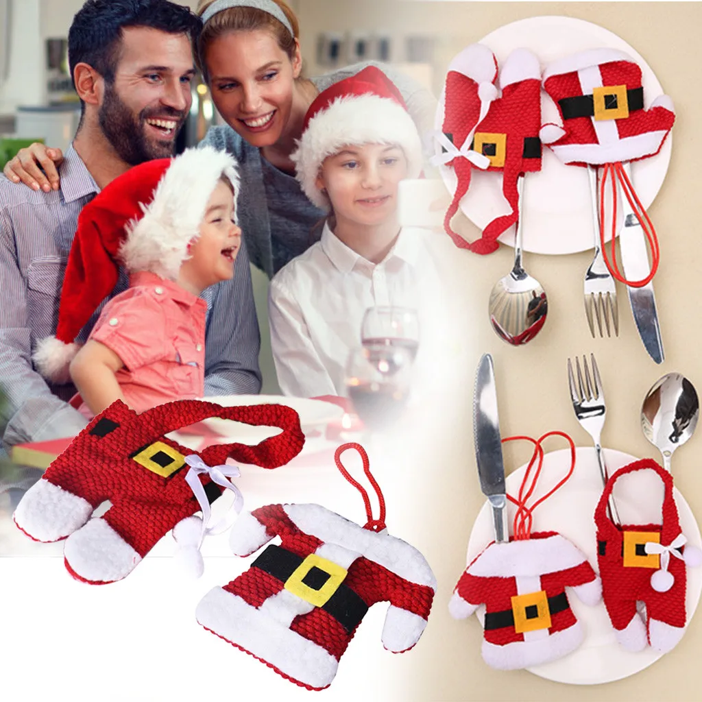 1 пара (2 шт.) Рождественские украшения держатели столовых приборов в стиле Санта-Клауса с карманами декор для ужина (Без розничной упаковки)