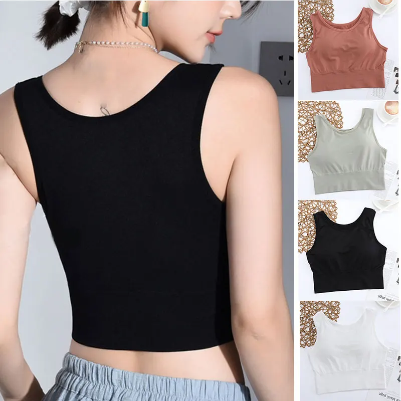 3. Однотонный топ на бретелях легко сочетается с одеждой. Цвет простой и основной для девочек-подростков или женщин. Вы будете чувствовать себя свободно во время бега на улице или дома.
