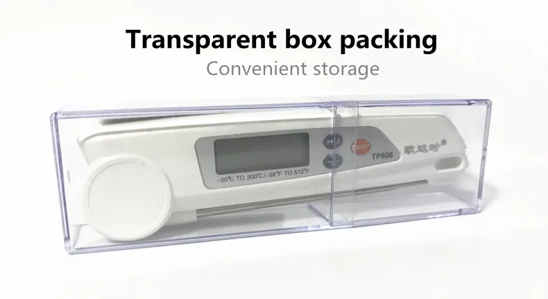 Продукт Особенности: 1. Имеет низкое энергопотребление, высокую стабильность, высокую точность и быструю скорость измерения и т. д. 2. Используется для измерения жидкости, воды, молока, кофе, чая, продуктов питания, мяса, масла, барбекю и даже комнатной температуры Эксплуатационные характеристики продукта: Диапазон температур: -50 °C ~ 300 °C (-58 °F ~ + 572 °F) Разрешение: 0,1 °C/0,1 °F Точность: ± 1 ℃(± 1,8 ℉) Дополнительный блок температуры: °C / °F Функция интеллектуального переключателя: Откройте зонд «ON», закрытый зонд «OFF» Энергосбережение: Автоматическое выключение через 10 минут Хранение данных, функция температурной памяти Материал: нержавеющая сталь 304 и АБС-пластик Питание: 1 кисть для маскирующих средств 1,5 V элемент питания AAА (в комплект не входит) Упаковка: прозрачная пластиковая коробка Вес нетто: 50 г Вес брутто: 125 г