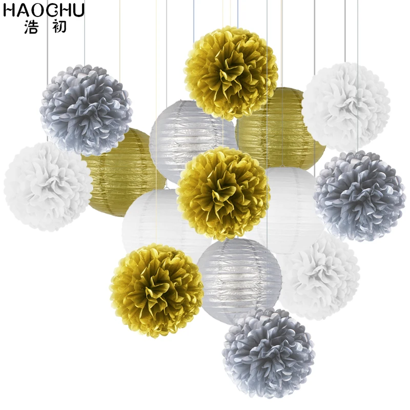 HAOCHU бренд Название: 15 шт./компл., смешанный бумажный фонарь ткань цветочные шары из бумаги для свадьбы, дня рождения, декора, сделай сам, Детские вечерние украшения Размер: 6 дюймов/15 см, 8 дюймов/20 см, 10 дюймов/25 см, 12 дюймов/30 см, Цвет: 25 цветов на выбор Содержимое упаковки: 15 шт./компл. = 6 шт. бумажный фонарь + 9 шт. тканевый помпон Функции: Свадьба/День рождения/Вечеринка для детского душа, праздник, украшение дома и т. д. Цвет немного отличается, надеемся на ваше понимание