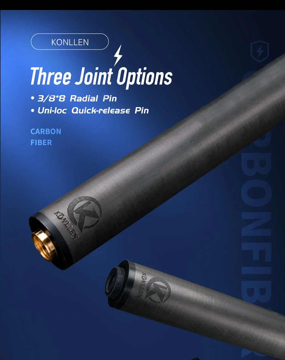 Название: углеродный энергетический вал KONLLEN (подходит для Carom Cue) Наконечник: бакелитовый наконечник Длина: 69 см Вал: стержень из углеродного волокна Соединение: 3/8*8 радиальный контакт 3/8*8 радиальный штифт (Hirakuchi) Быстроразъемный штырь Uni-loc Вес: 3,7 унций Размер наконечника: 12-12,4 мм Совет: огненный наконечник Подходит для: Carom Cue