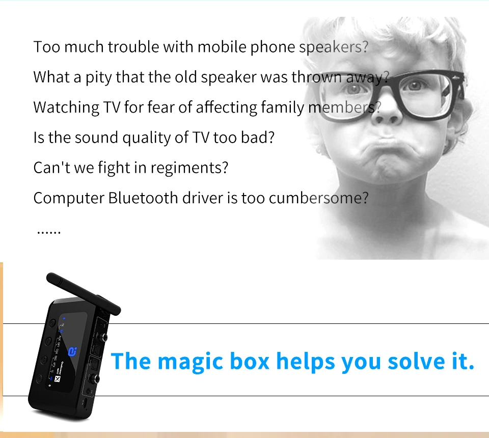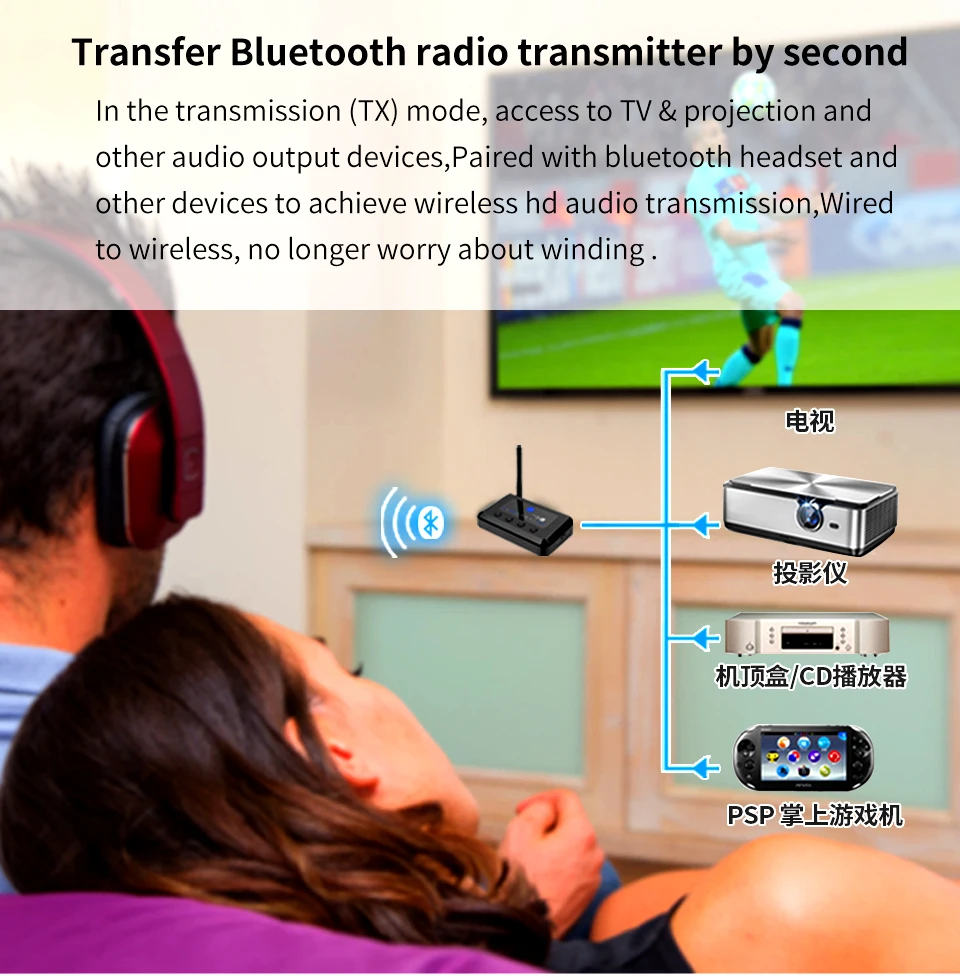 Примечание:Если вы хотите использовать его для просмотра телевизора и просмотра фильмов на вашем ПК, пожалуйста, убедитесь, что наушники bluetoothПоддержка APTX с низкой задержкой, В противном случае это будет иметь небольшую задержку звука. Если вы не знаете, как выбрать bluetooth наушники APTX с низкой задержкой, рекомендуется, перейдите по ссылке «купить»: