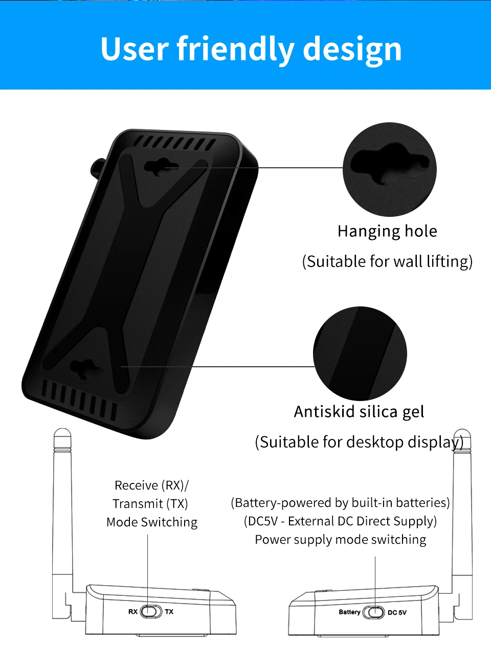 【Внешняя антенна 30 м/100 футов Дальний диапазон】 Фактически Протестировано более 100 футов (30 м) в помещении без каких-либо застревания и задержки. Две антенны имеют широкий и длинный Диапазон передачи, супер стабильный и мощный. Приемник передатчика BTmagic идеально подходит для внутреннего и наружного подключения независимо от того, где установлены ваши колонки/медиацентр