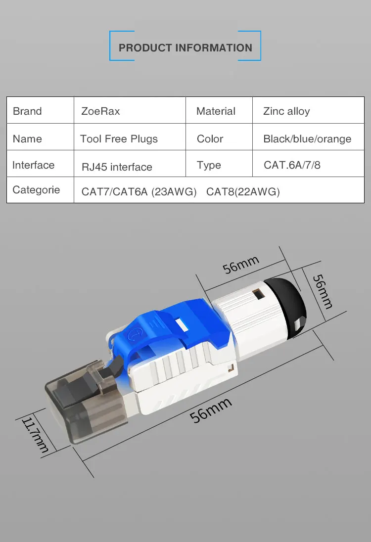 ZoeRax Cat8 Ethernet Кабельный соединитель RJ45 металлический инструмент Бесплатная простая разъём для 2000Mhz 2Ghz 40G двойной экранированный твердый LAN кабель 22срг-26AWG