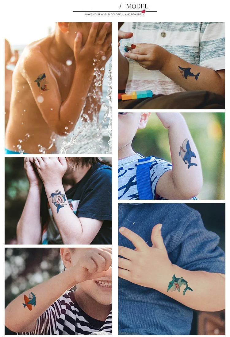 Размер: 7,5x12 см за штуку Примечание: Перед использованием изделия необходимо поглощать источсветильник светильник, тогда они будут более яркими в темноте. Руководство пользователя: 1. Вырежьте татуировку по выбору и удалите прозрачный лист. 2. Нанесите татуировку лицом вниз на кожу. 3. Тщательно смочите татуировку губкой. 4. Через 20-30 секунд Аккуратно удалите бумажную подложку. 5. Дайте татуировке высохнуть. Для удаления: 1. Нанесите татуировку спиртом или детским маслом. 2. Подождите 10 секунд. 3. Затем аккуратно и многократно протрите большим количеством спирта или детским маслом, пока не перемещаете. Предупреждение: 1. Прекратите использование при появлении раздражения. 2. Не наносите прямо на глаза. 3. Не для детей младше 3 лет.