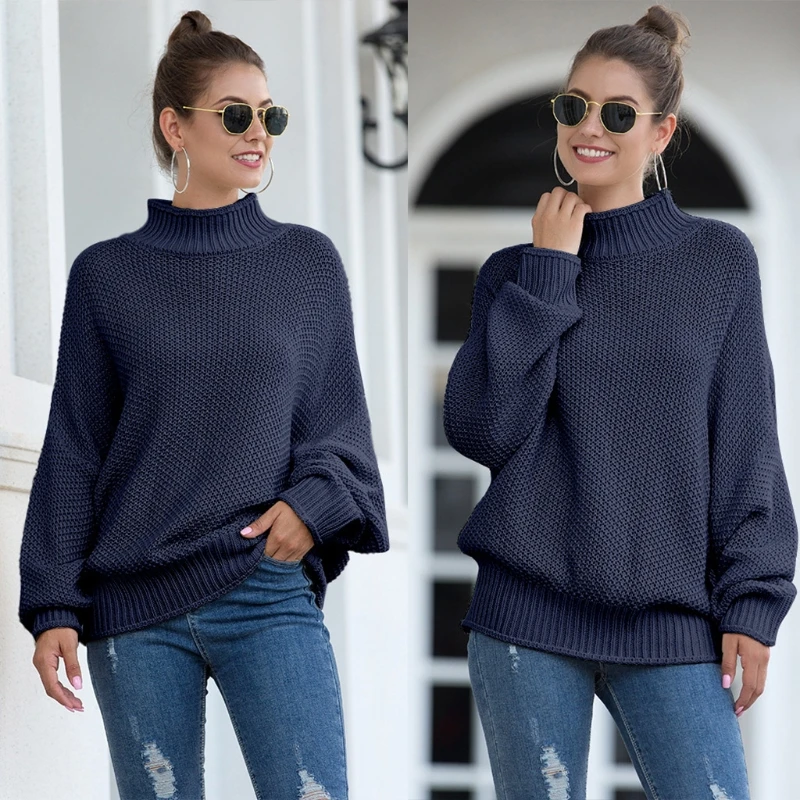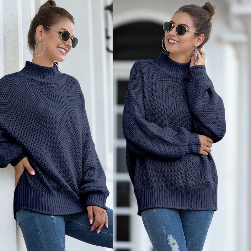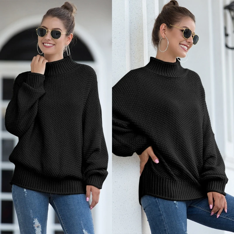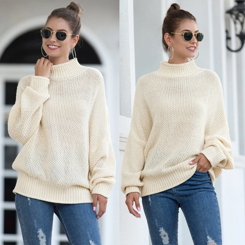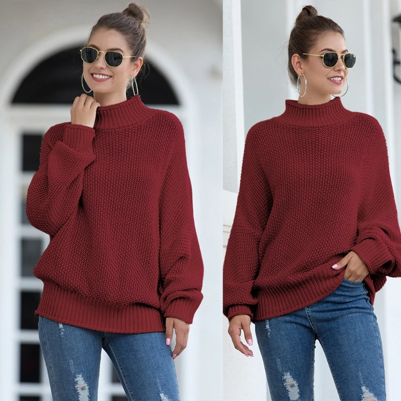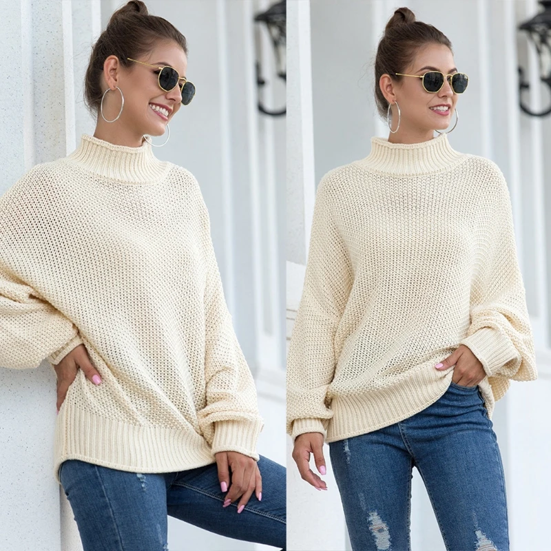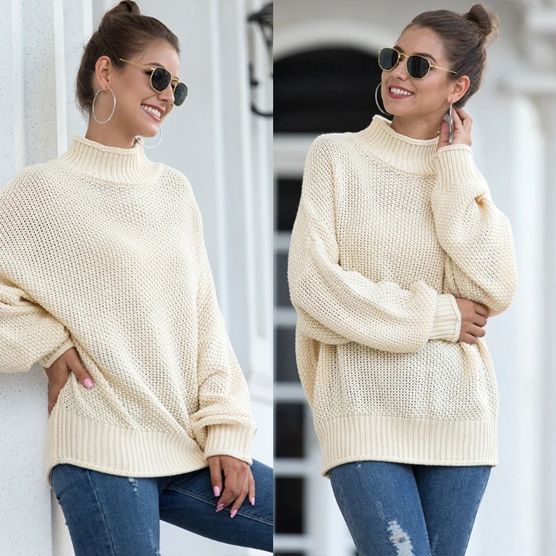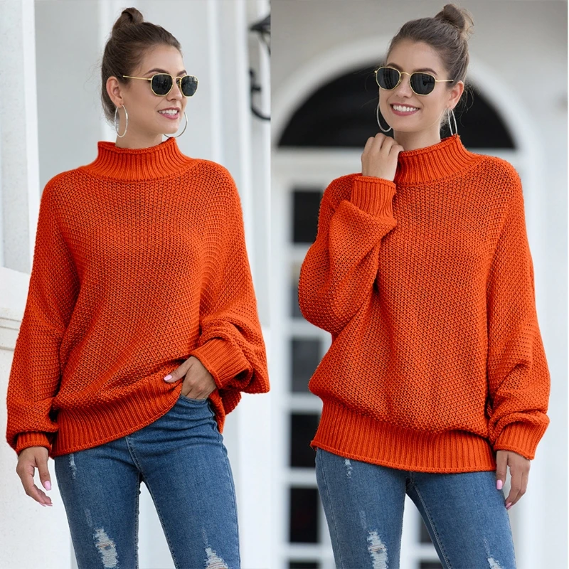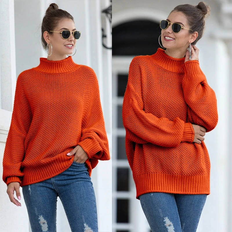 Рукав «летучая мышь»; Длинный рукав; Половина шеи; Водолазка; Повседневная застежка; Свободный крой; Сплошной цвет.