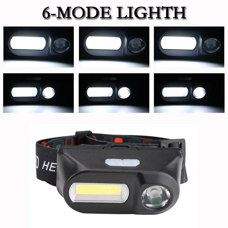 Две независимые кнопки для 6 режимов освещения (T6 подсветка-2 * COB средний-T6 + 2 * COB яркий-T6 + 2 * COB вспышка) для удовлетворения ваших различных потребностей.