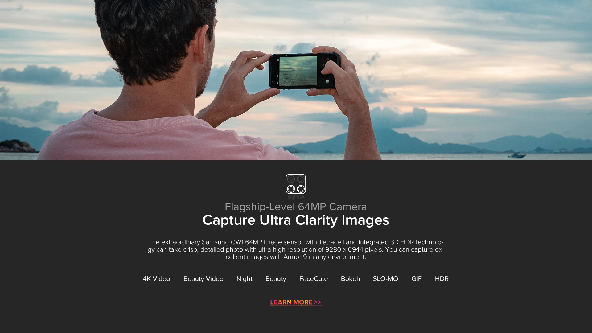 Основная камера: 64 мп + 5 МП (Дополнительная камера для функции тепловизионной съемки FLIR) + 2 МП