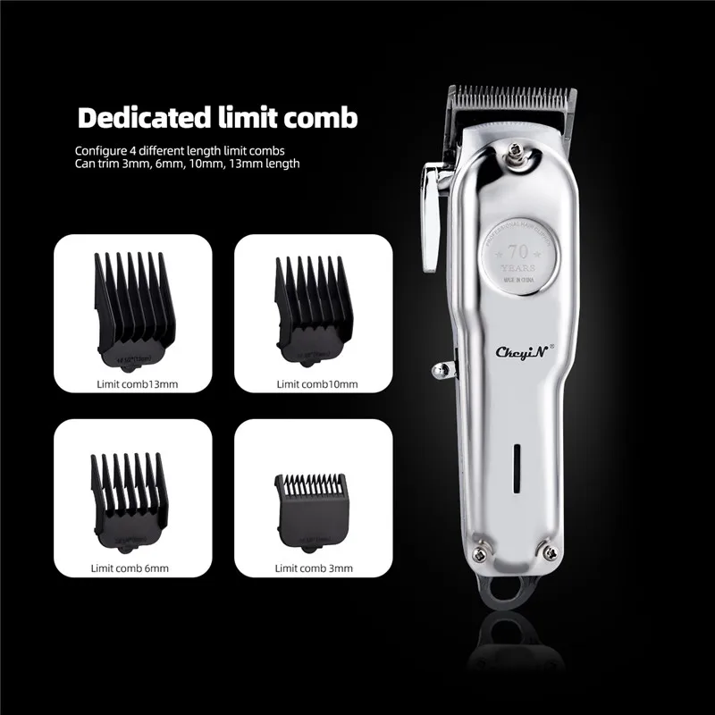Материал из нержавеющей стали 1,45 мм, безопасный, острый и не застревает волосы, край лезвия твердый и острый, его нелегко сломать 2. Регулируемое цельностальное лезвие, автоматическое шлифование во время использования, сохраняет острый в течение длительного времени без замены 3. Специальный ограничительный гребень, настройте 4 гребня с различными длинами, можно обрезать 3 мм, 6 мм, 10 мм, 13 мм длина 4. Отличный Срок службы батареи, батарея большой емкости, длительный срок службы батареи, не нужно беспокоиться о разряде питания во время использования 5. Портативная зарядка, удобная и быстрая, можно проводить в путешествиях 6. Низкий уровень шума, низкочастотная вибрация, снижение шума ребенок больше не боится стрижки