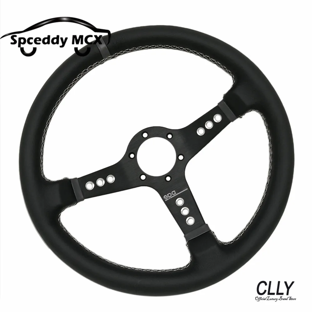 Этот руль 350 мм-новый дизайн, он изготовлен из лицевой кожи с красивой строчкой. В комплект входит Роговая кнопка.
