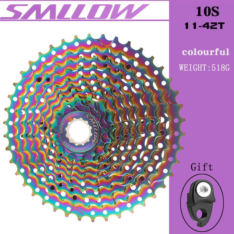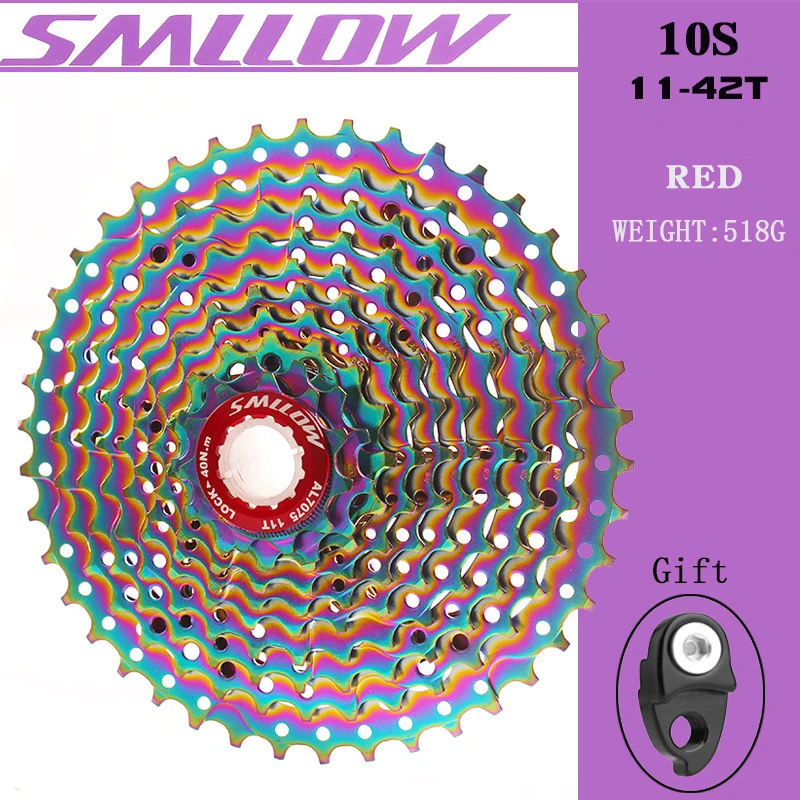 Спецификация: Бренд: SUNSHIEN-SZ/SMLLOW Номер модели: 10S 11-42T Тип: велосипедный маховик Использование: горный велосипед Материал: хром-молибденовая сталь Скорость свободного колеса: 10 Зубцы передач: 11-42T Настраивается: нет Цвет: черный/золотой/синий/красный/зеленый/фиолетовый/Радужный Вес: маховик: 518 г Маховик + цепь: около 878 г