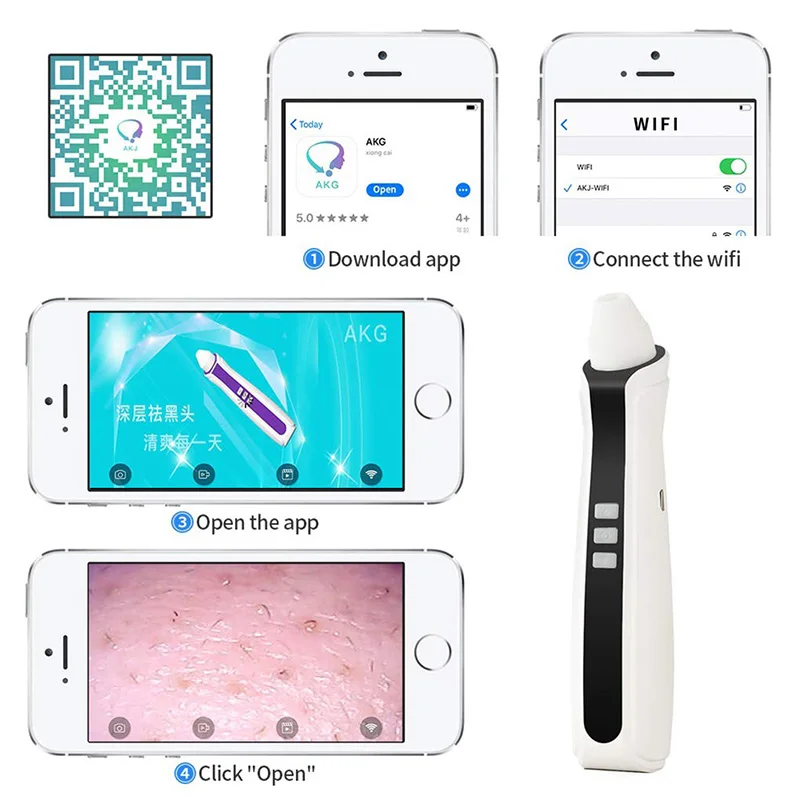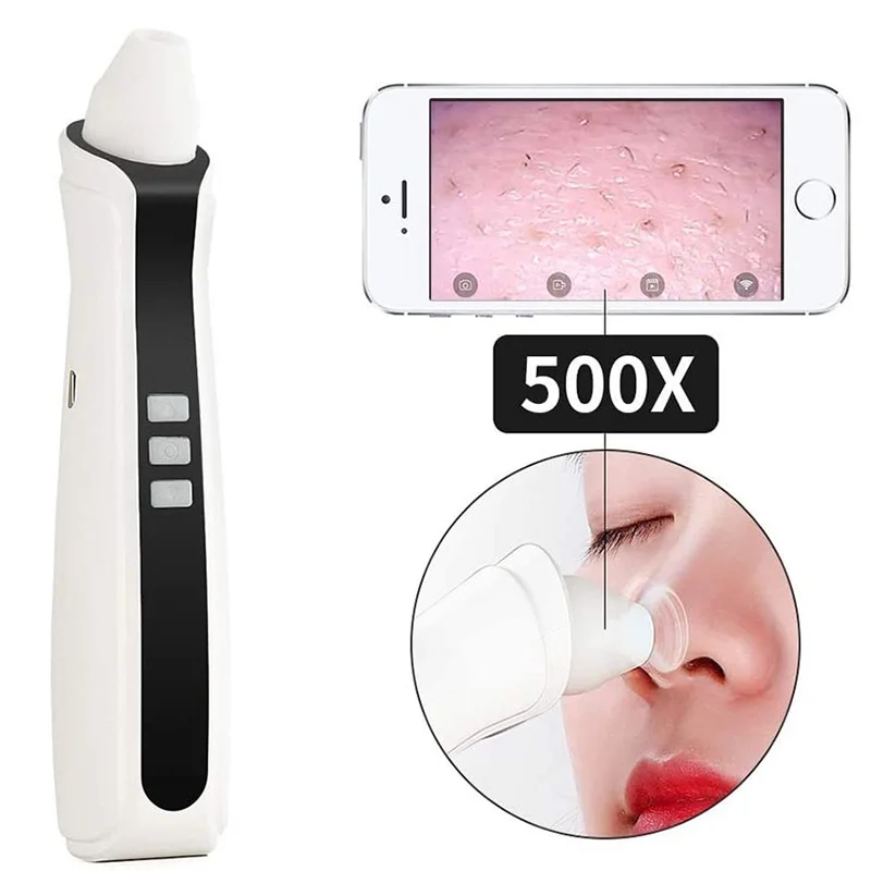 Устройство для удаления черных точек с usb-зарядкой, устройство для очистки пор лица с Черной головкой, вакуум 500X, WiFi, микроскоп, камера, 3 всасывающие головки