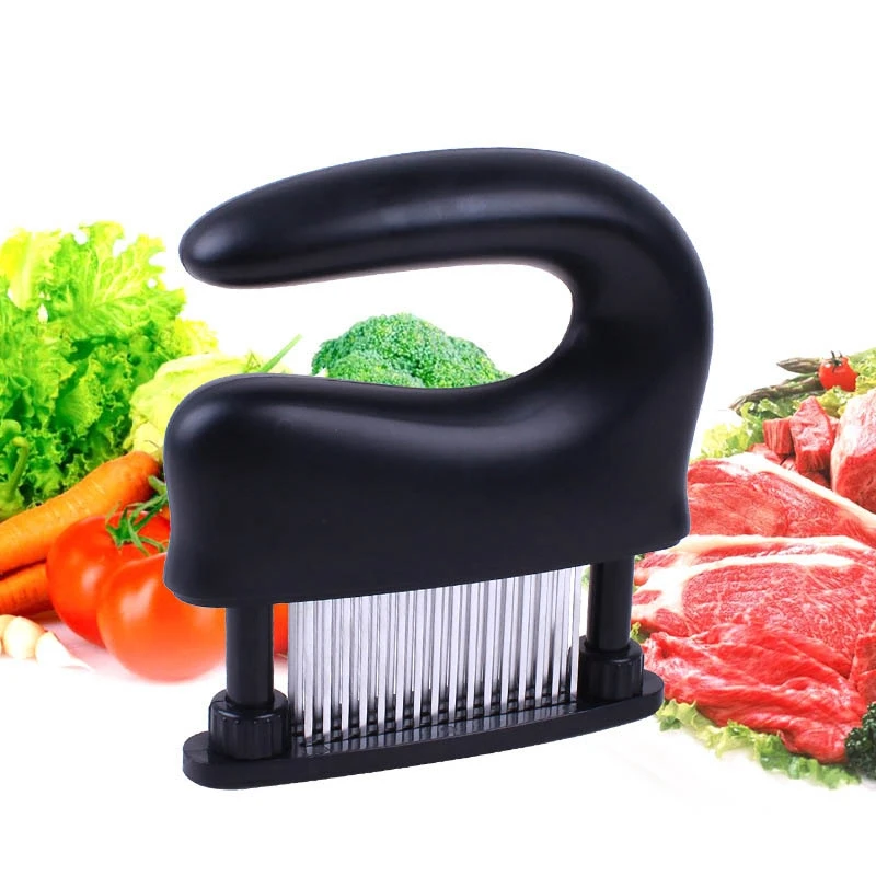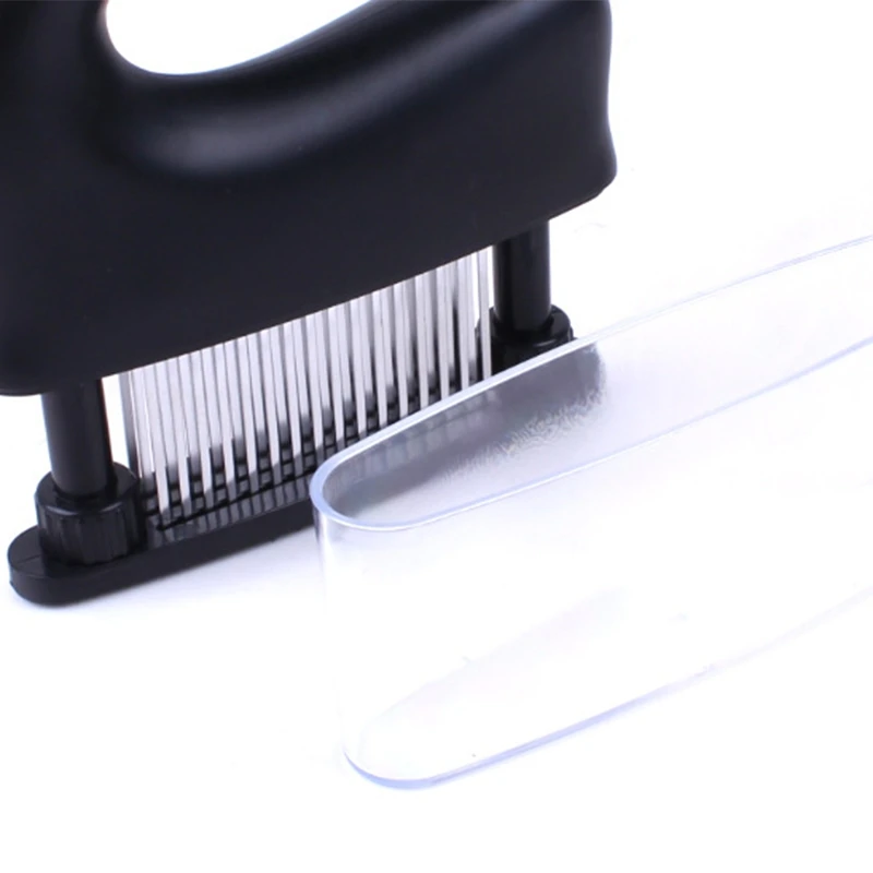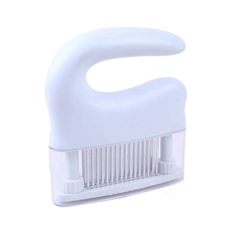 Безопасный и простой в использовании-изготовлен по чрезвычайно высоким стандартам, с пищевым АБС-пластиком и 48 лезвиями из нержавеющей стали, это крепкое сконструированное устройство имеет проектированный пружинный блок, который хорошо убирает лезвия для безопасности, прокалывая чисто и легко через ваше мясо. Он имеет эргономичную форму, чтобы удобно держать руку; Просто нажмите на устройство для использования, активируя три ряда супер сильных, ультра острых лезвий.