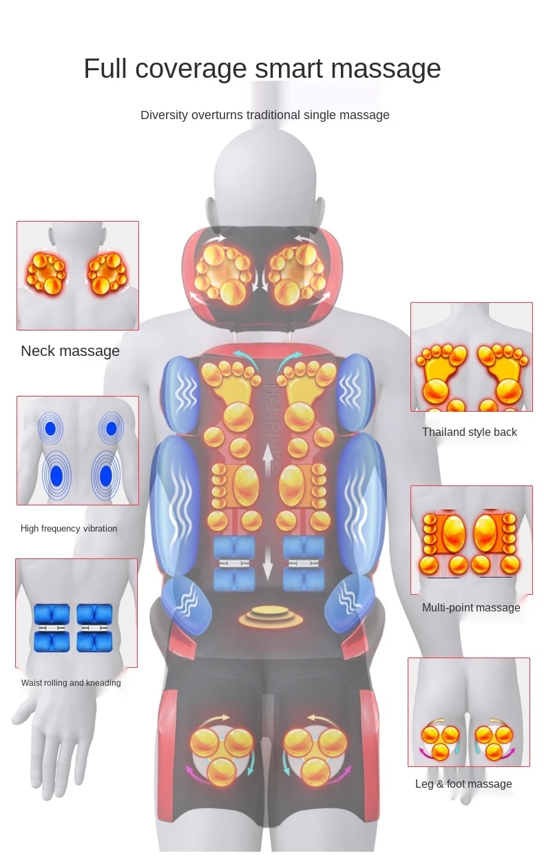 恒宜康颈椎按摩器颈部腰部家用按摩垫 全身多功能按摩靠垫坐垫椅垫 揉捏推拿开背机
