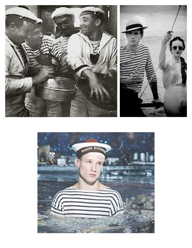 Считается, что полосатые футболки помогают найти моряков, которые падают с лодки. Позже полосатая футболка стала стандартом не только для французского морского флота и рыболовного флота, но и для других военно-морских сил по всему миру.