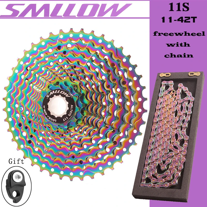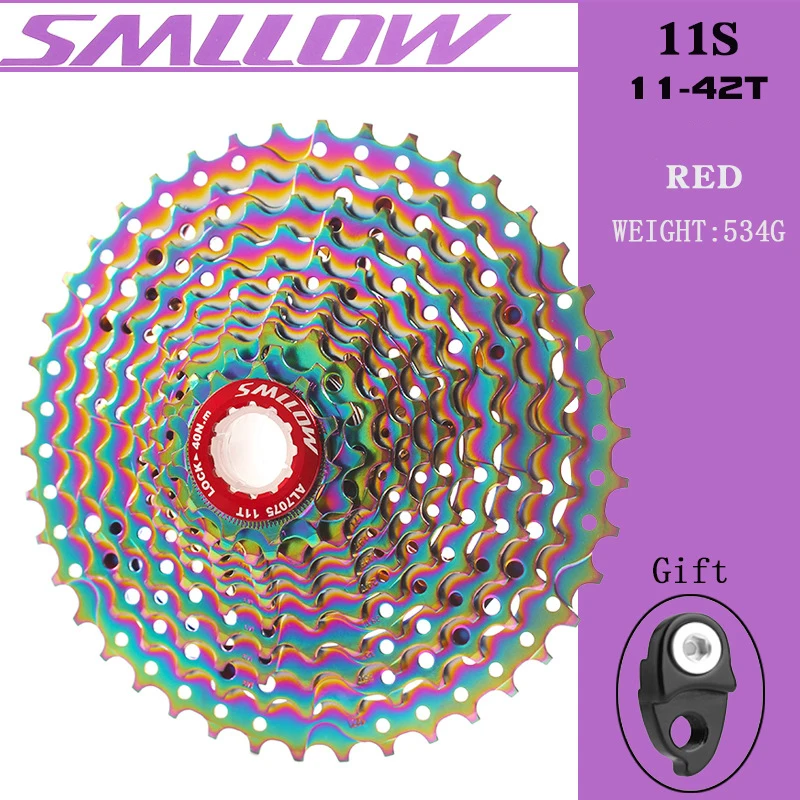 Спецификация: Бренд: SUNSHIEN-SZ/SMLLOW Номер модели: 11S 11-42T Тип: велосипедный маховик Использование: горный велосипед Материал: хром-молибденовая сталь Скорость свободного колеса: 11 Зубцы передач: 11-42T Настраивается: нет Цвет: черный/золотой/синий/красный/зеленый/фиолетовый/Радужный Вес: маховик: 534 г Маховик + цепь: около 888 г