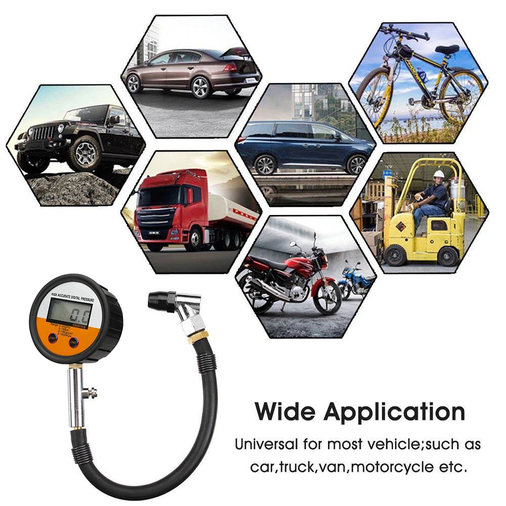 Автомобильный манометр для шин, цифровой тестер на колесо, датчик давления воздуха в шинах, шланг, многофункциональный автоматический манометр