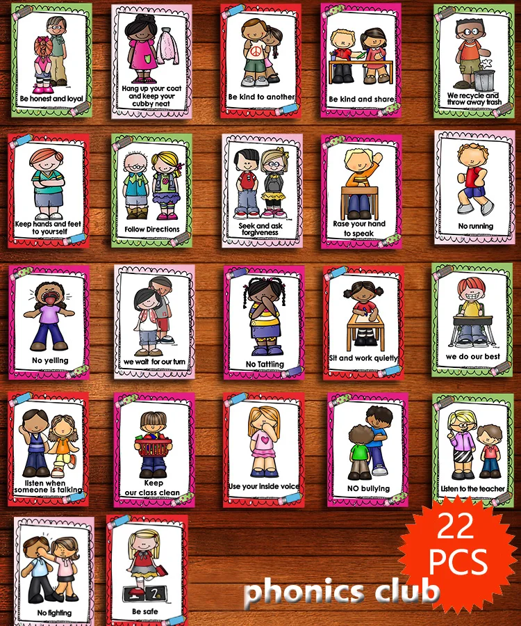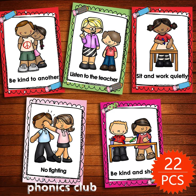 22 шт. английский язык, Обучающие игрушки Flashcards для детей, правила классной комнаты, учительские пособия для детского сада, классная декорация стен