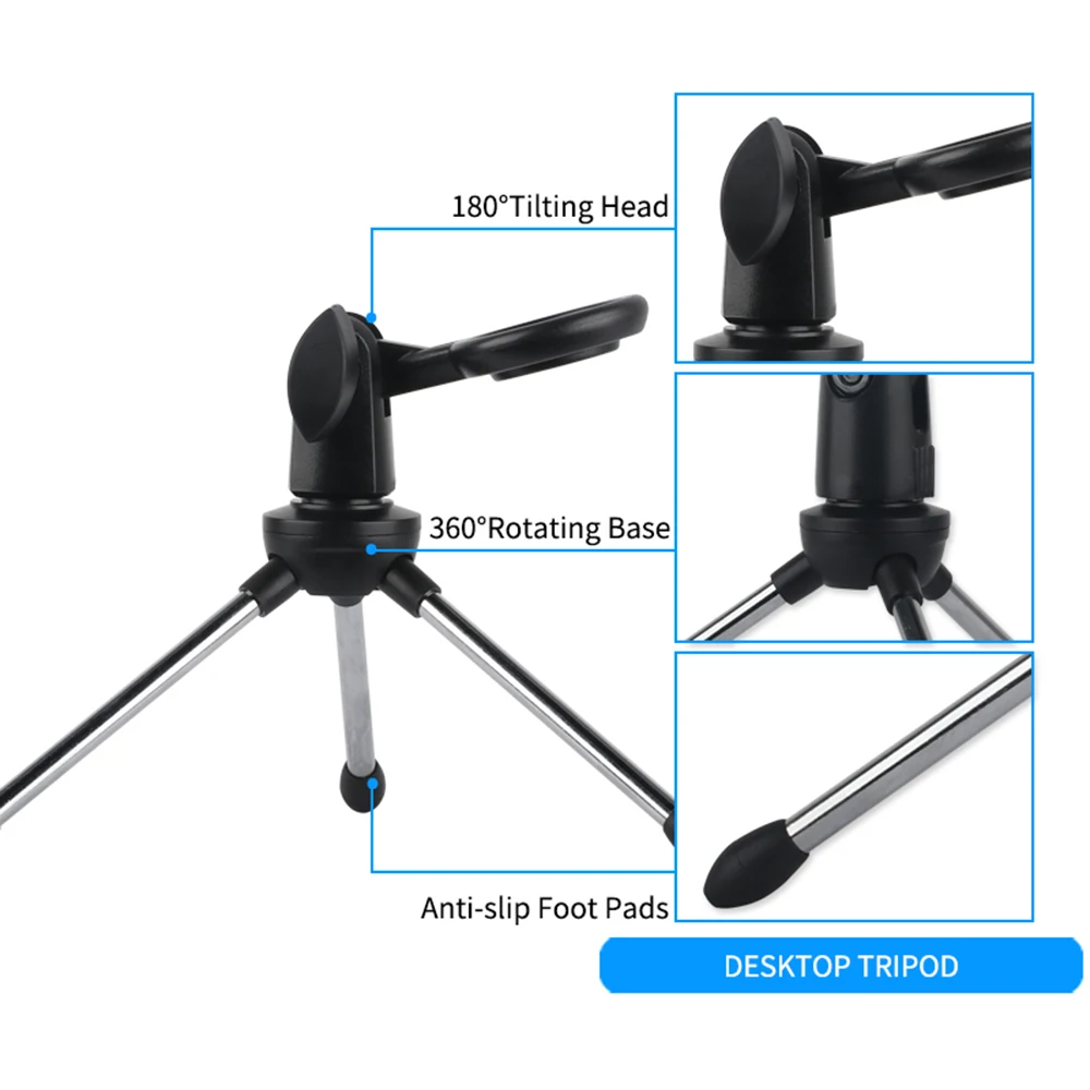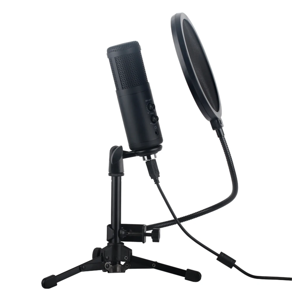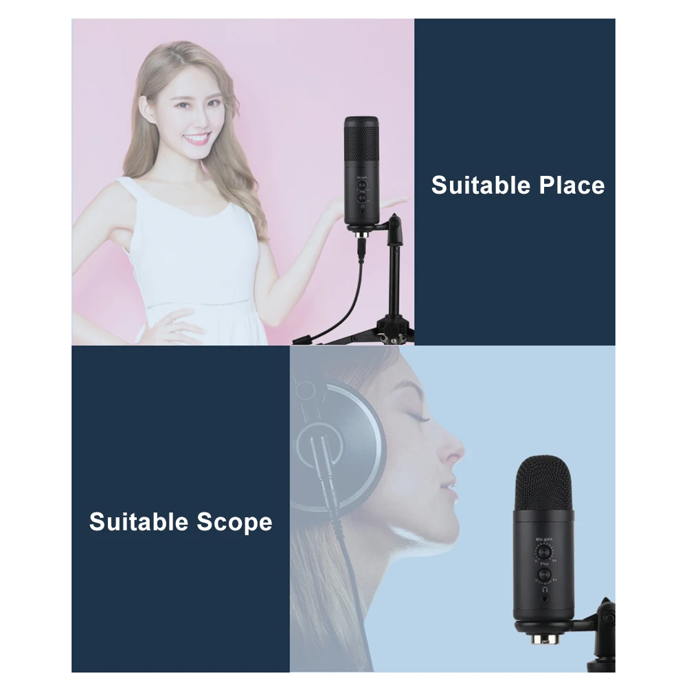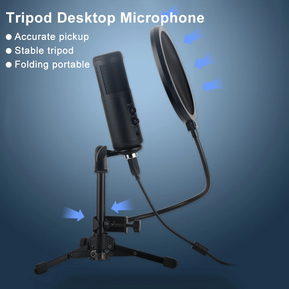 Микрофон-это кнопочная панель для управления усилением микрофона и громкостью, с аудиоразъемом. С акустическим фильтром для шумоподавления, штатив для стабильной поддержки. Подключи и играй, он подходит для записи студии и потоковой передачи.