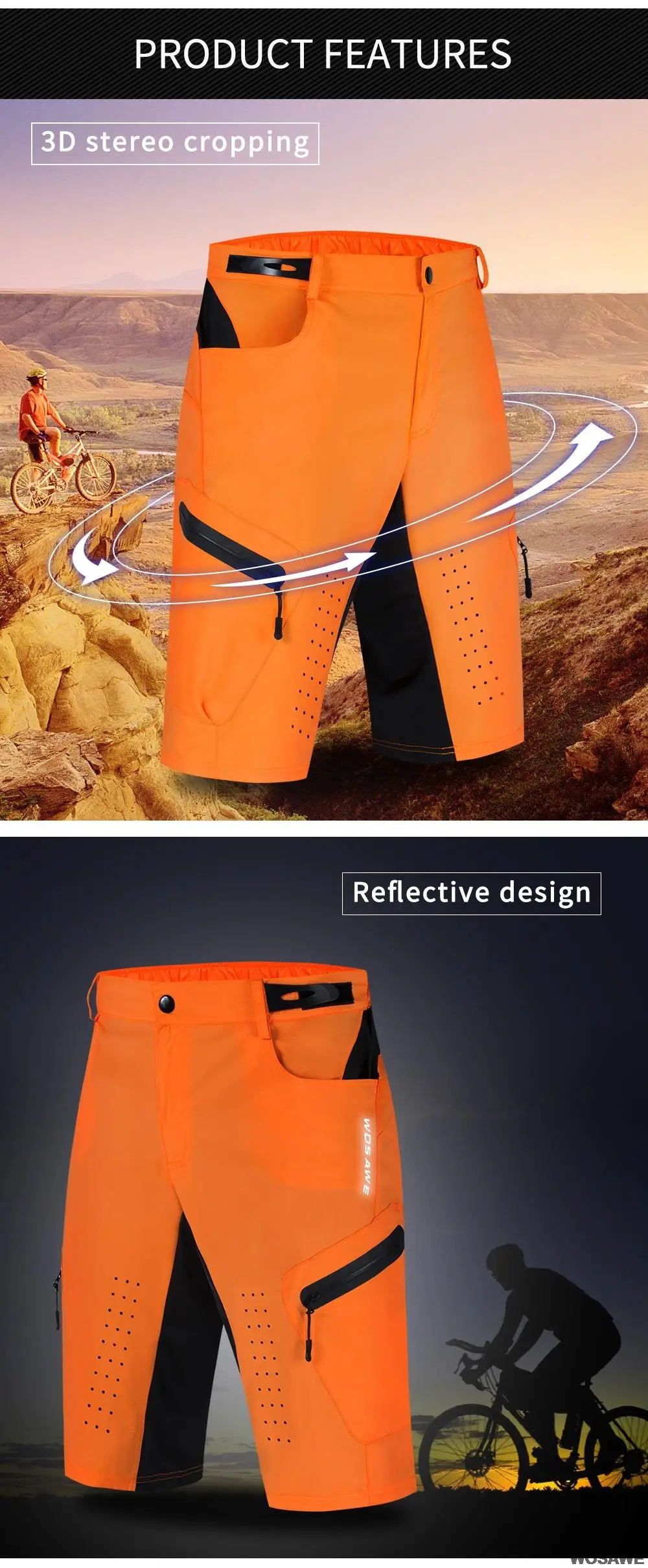 Дышащие и удобные велосипедные шорты WOSAWE для горного велосипеда