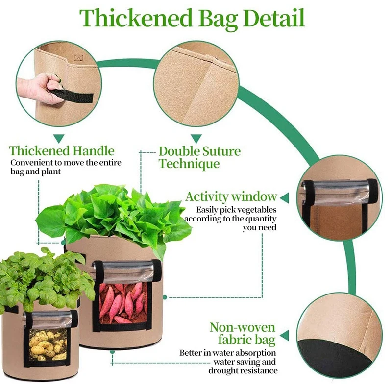 1. Прочный и практичный мешок для посадки можно использовать для выращивания растений в маленьком саду без ограничений пространства; 2. Прозрачное окно сбора урожая может непосредственно видеть процесс роста растений; 3. Водонепроницаемый, sunsn, термостойкость, холодное сопротивление; 4. Подходит для сева, посадки, посадки в помещении и на открытом воздухе;
