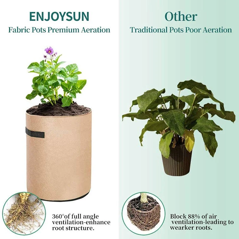 7. Эти мешки для посадки изготовлены из высококачественного нетканого материала, что позволяет растениям дышать лучше и стать здоровее. Вентиляционные отверстия