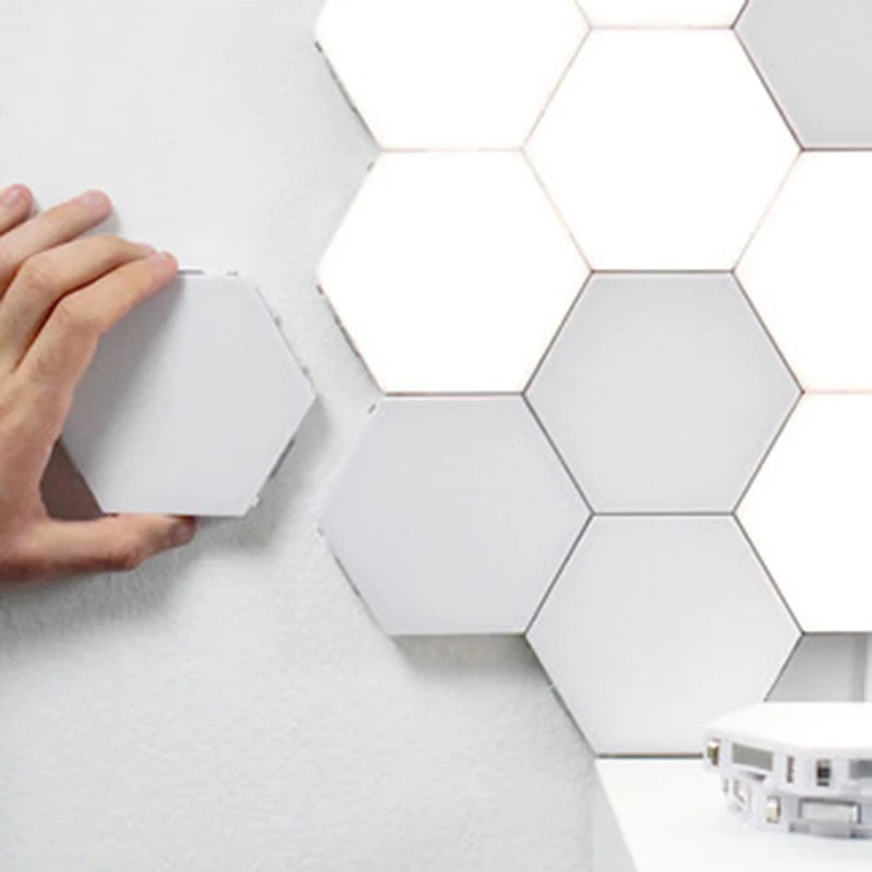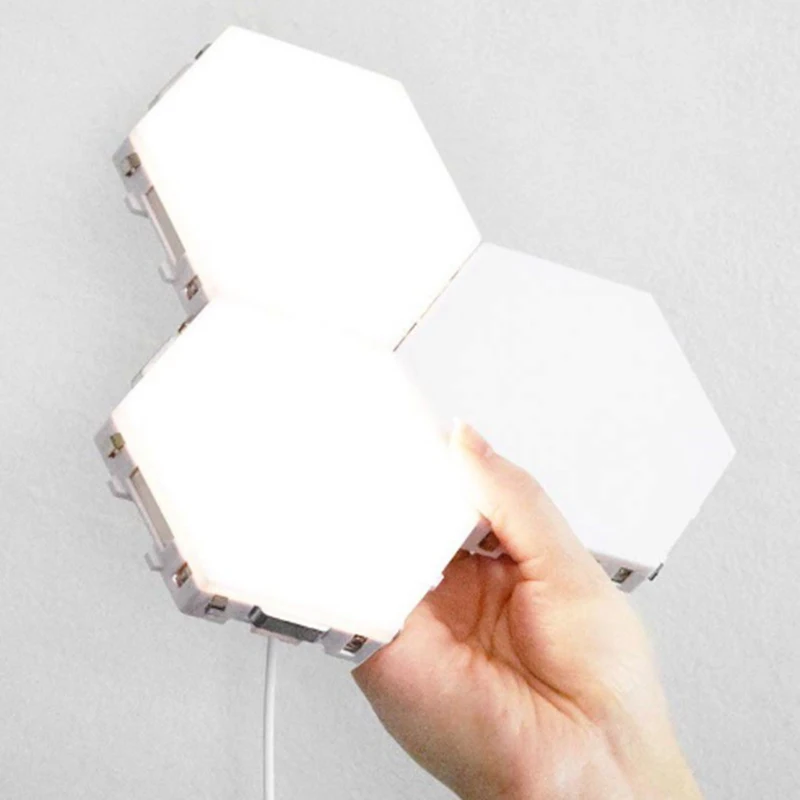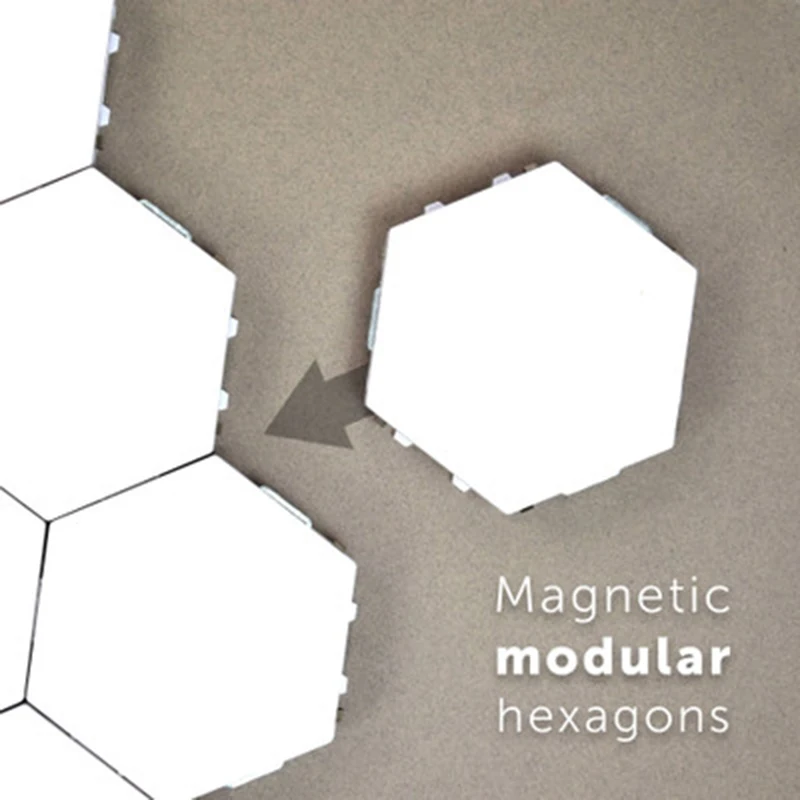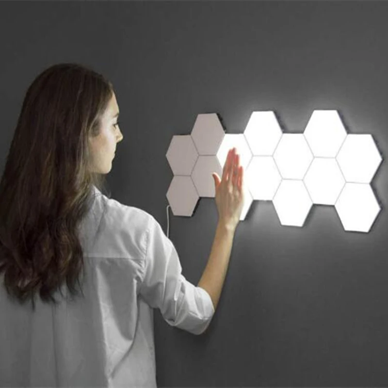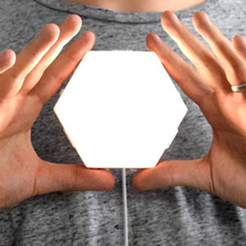 3. Это модульная сенсорная настенная лампа. Используйте шестиугольный диск для создания любой структуры, которая подходит вашим потребностям, затем откройте его и закройте при касании.