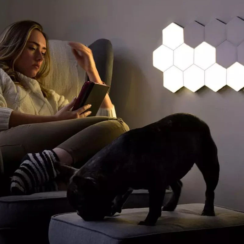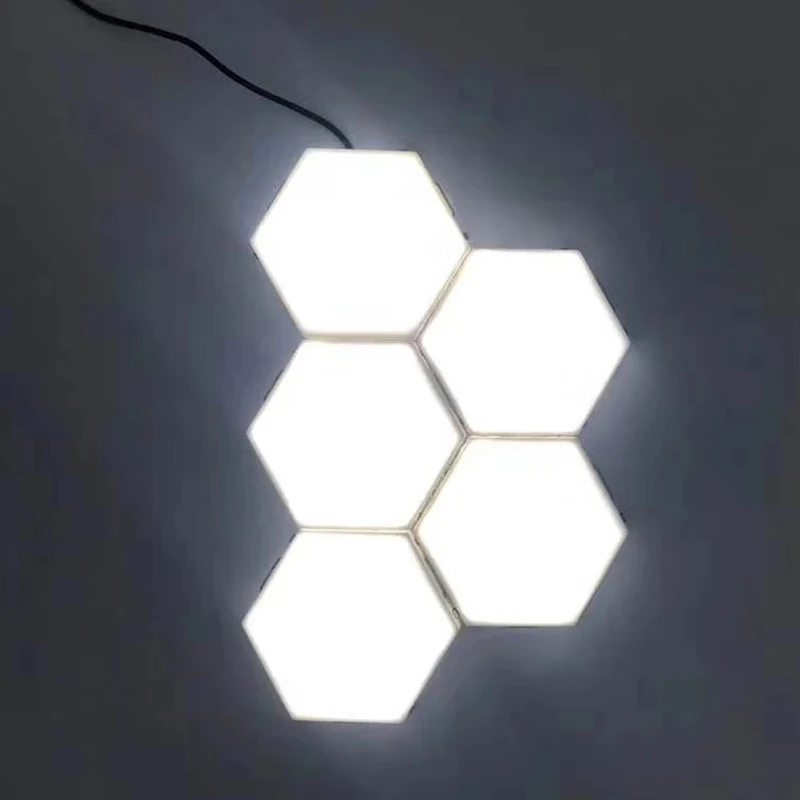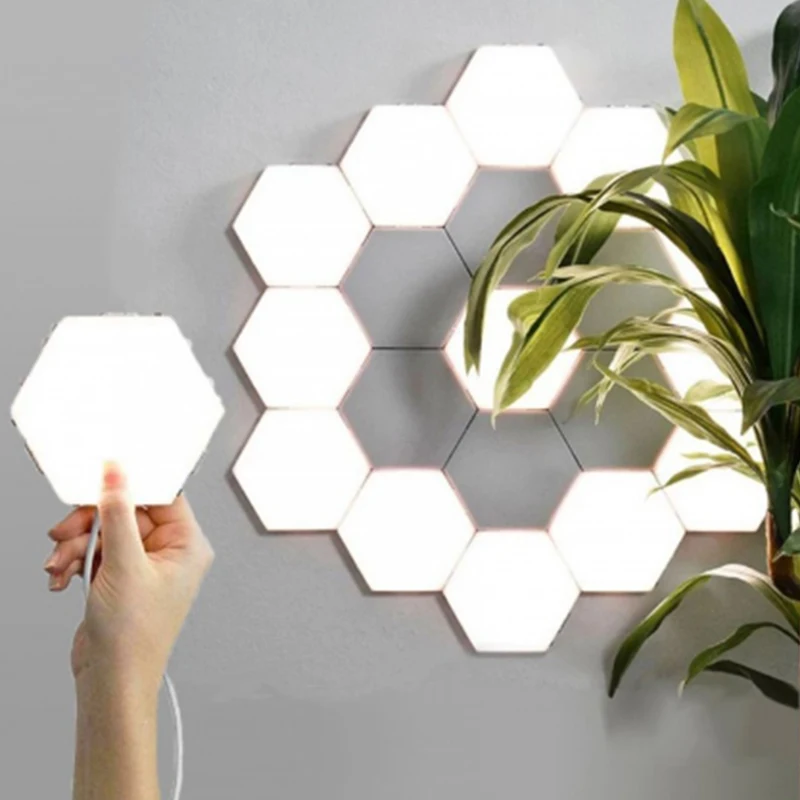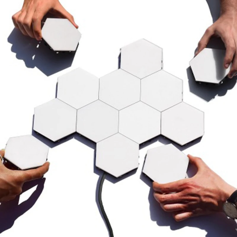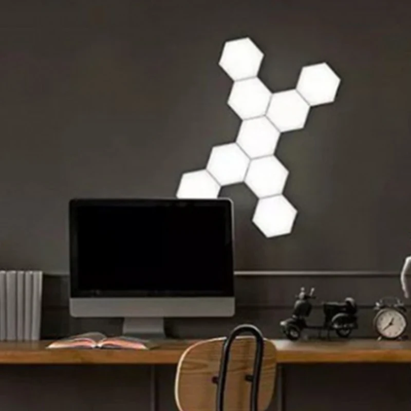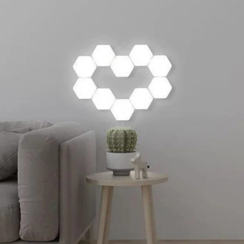 3. Это модульная сенсорная настенная лампа. Используйте шестиугольный диск для создания любой структуры, которая подходит вашим потребностям, затем откройте его и закройте при касании.