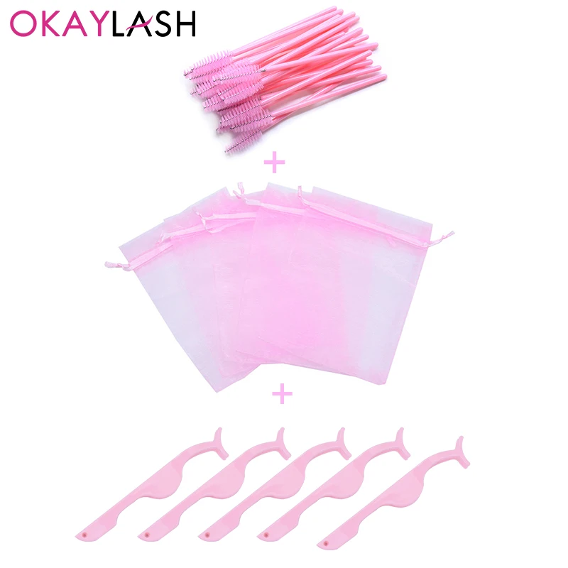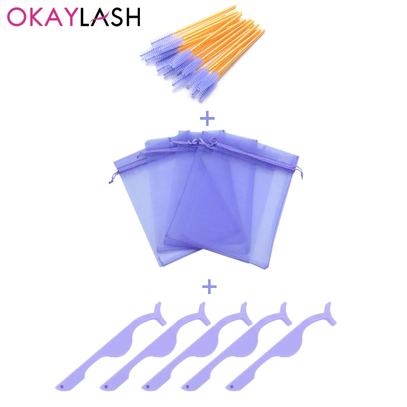 OKAYLASH оптовая продажа 3 в 1 Набор Продажа ресниц Пинцет аппликаторы для ресниц Сатиновые декоративные сумки с ресниц кисти тушь палочки