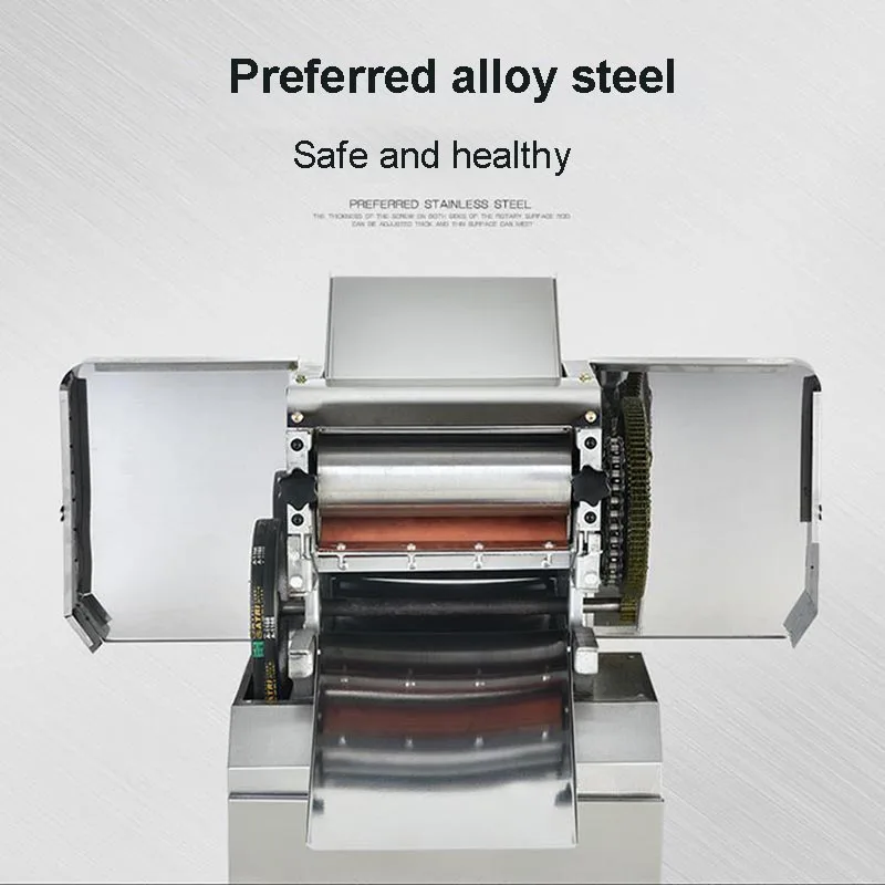 Машина использует цепной привод, что делает диапазон давления ролика большим регулируемым зазором. Самое большое преимущество этой машины заключается в том, что нож для соскабливания может перемещаться синхронизацией с напорным валиком так, чтобы отпрессованная лапша была гладкой и приятной; уменьшает истирание ролика и продлевает срок службы машины, удовлетворяет потребности пользователей высокого качества. Поверхность под давлением, разминайте машину двойного назначения. Машина проста в использовании, красивый внешний вид, высокая эффективность, корпус с железным спреем, в соответствии с национальными стандартами здоровья, подходит для отелей, ресторанов, пищевой промышленности, столовых и отдельных продуктов питания лапши